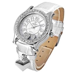 Disney ディズニー ミッキー ハート チャーム 腕時計 ホワイトベルト×シルバーカラー 文字盤 本牛革 ベルト スワロフスキー使用 白【並行輸入品】